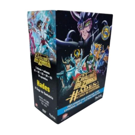 A espera Finalmente terminou, e o anime mais aguardado da década chega ao Brasil para fazer história. Neste box especial de Cavaleiros do Zodíaco: Hades - A Saga do Santuário, você vai poder guardar para sempre todos os 13 episódios do maior desafio da vida de Seiya, Shiryu, Hyoga, Shun e Ikki, queimando seus cosmos até o limite para derrotar os espectros das Trevas e salvar a deusa Atena. Novas aventuras, novos inimigos, nova animação e a mesma energia que transformou a série em sucesso!